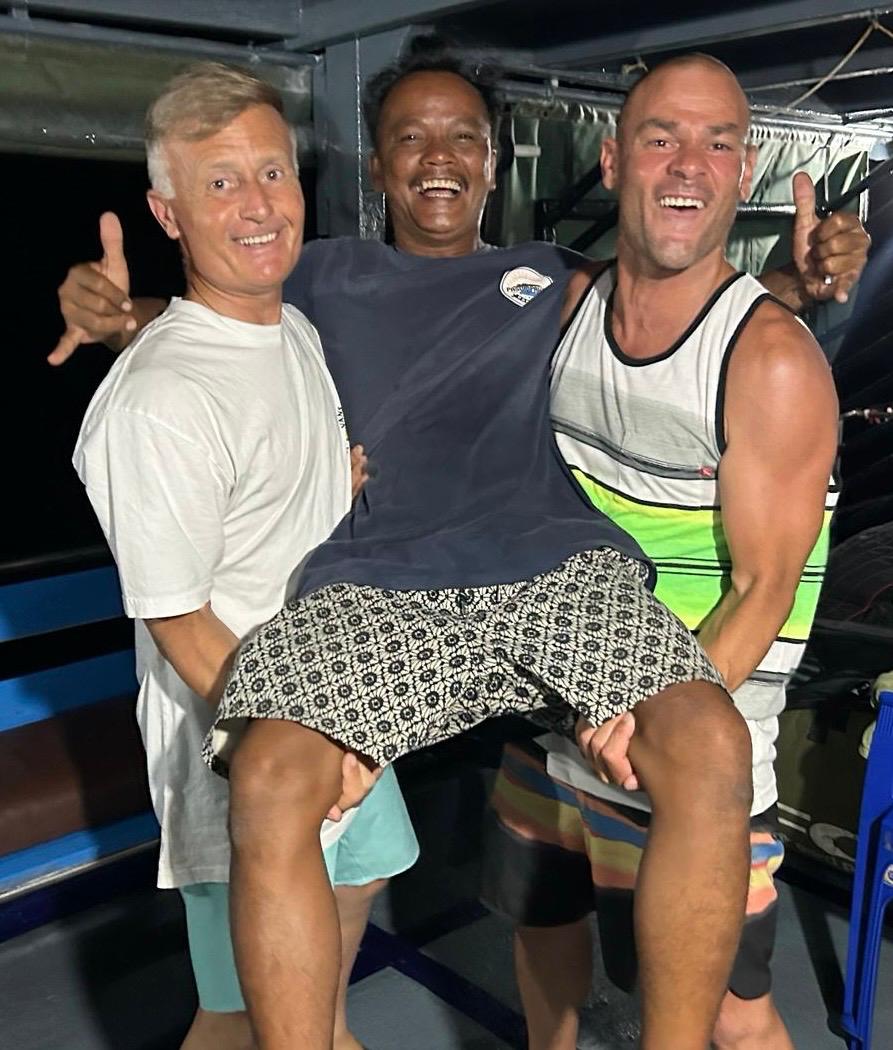 La expedición estaba organizada por Vicente García, de Oasis Surf Club, que puso muchísima ilusión para que todo saliera adelante. Nuestro guía sería David, del King Millennium, aunque navegaríamos en el Ombak Kabau, un barco de madera antiguo pero con mucho encanto.