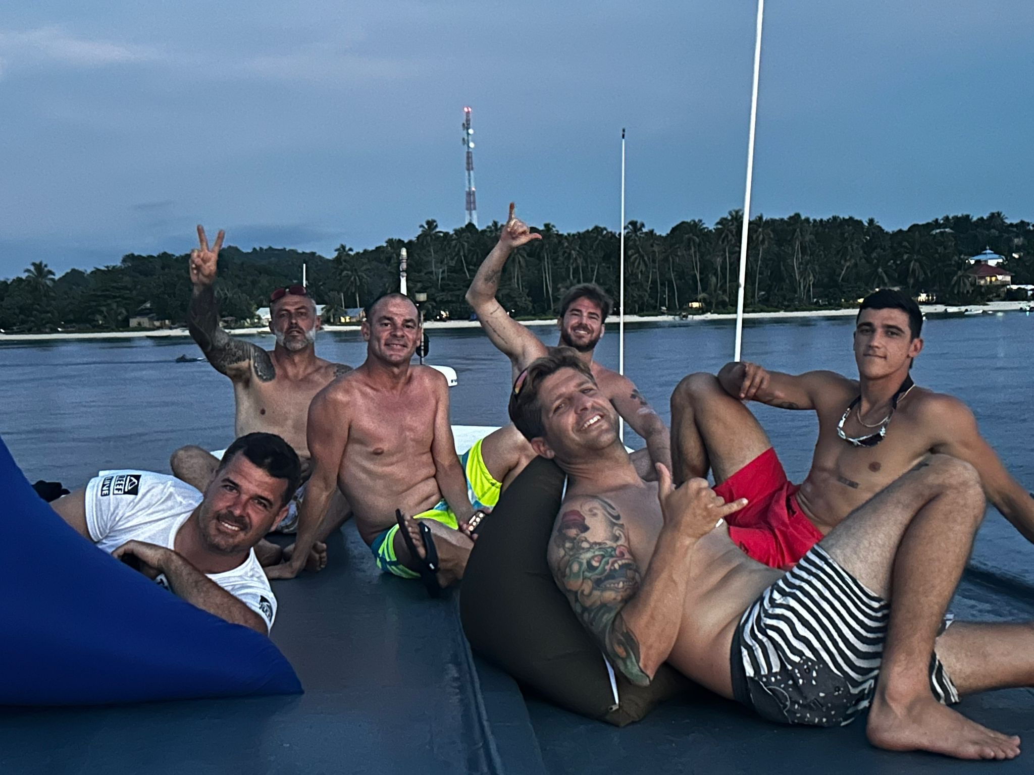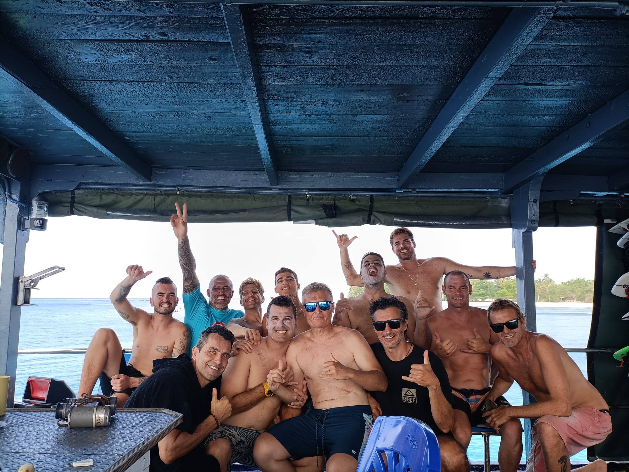 El grupo estaba completamente unido. Entre surf, música y anécdotas, el barco se convirtió en una pequeña familia flotante.
